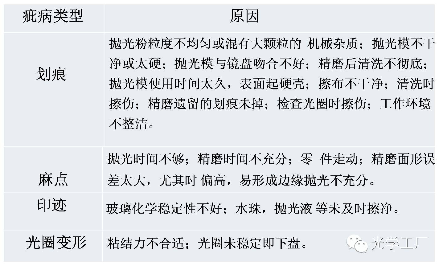 抛光模过硬,抛光模表面的不规则容易引起工件光圈不规则,容易造成擦痕。