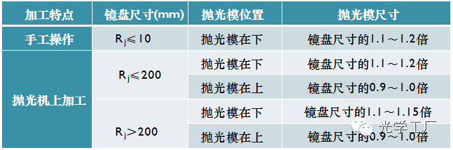 抛光模的几何形状影响抛光精度。在抛光过程中,抛光模表面与工件时紧密接触的,处于相互变化的状态,抛光模的面形必然影响工件的面形精度。